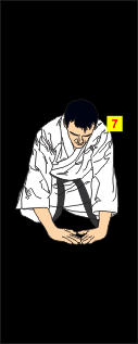 Как делать поклон?Встаньте прямо, ладони прижмите к бёдрам. Спину держите ровно, не крутите головой. Не приподнимайте голову, когда вы совершаете поклон. Угол наклона равен примерно 45-ти градусам. Слишком глубокий или недостаточно низкий поклон считается невежливым. ![]() В начале и в завершение тренировки делается ШИКИ в положении СЕЙДЗА, где тремя ПОКЛОНАМИ ученики выражают уважение: "ШОМЭН-НИ-РЭЙ" — основателям КАРАТЭ-ДО, основателю школы. По команде shomen ni rei все кланяются в сторону шомен, показывая, что они уважают каратэ и его традиции. "СЭНСЕЙ-НИ-РЭЙ" — своему учителю; "ОТАКАЙ-НИ-РЭЙ" — своему труду на тренировке и друг другу. Как правильно принимать позу сэйдза?![]() ![]() ![]() ![]()