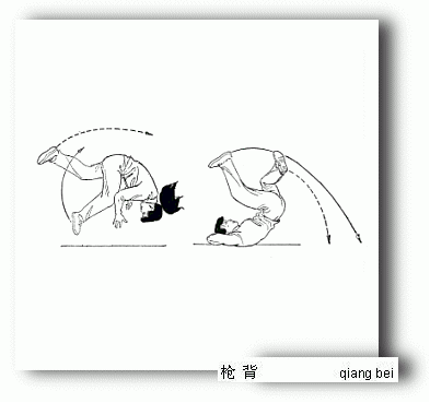 "Яншуай" - падение на спину: таз выводится вперед, а корпус мягко касается пола лопаточной частью спины.