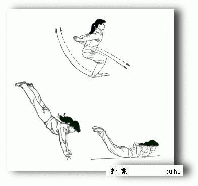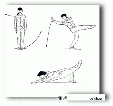 "Хуабу цэшуай" - скользящий шаг с падением на бок: правая рука вытягивается назад и касается пола, амортизируя падение; таз не касается пола, корпус при падении выпрямлен